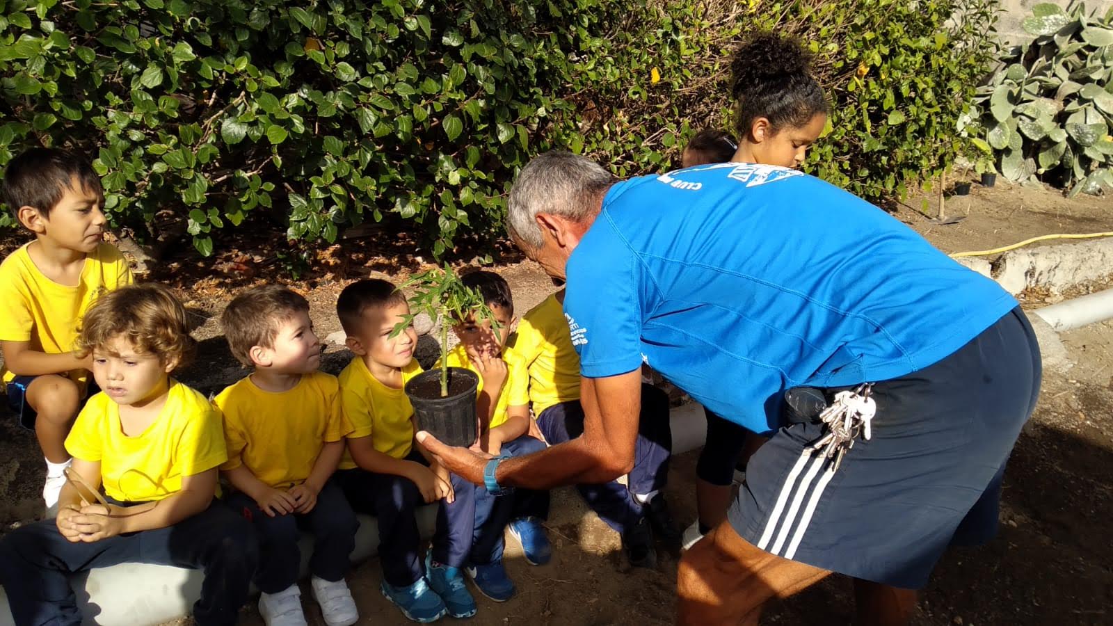 Iniciamos los trabajos en el huerto escolar. En este caso, hemos ido por grupos a plantar papaya, calabacines,...
